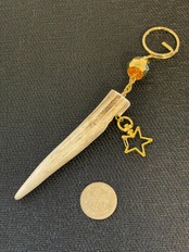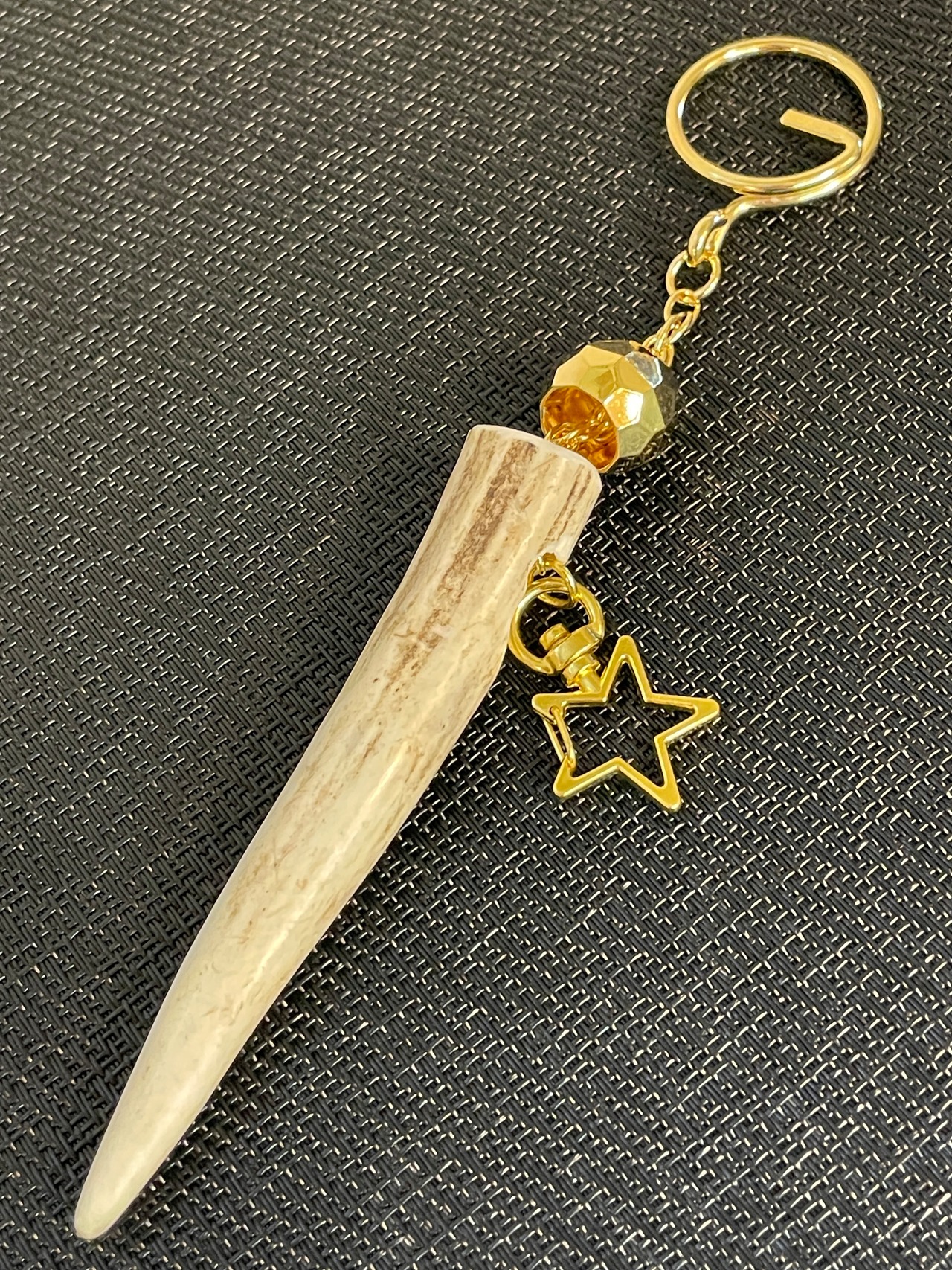 このエゾシカ角キーホルダーは、自然の美しさをそのままにしたユニークなアクセサリーです。狩猟で捕獲したエゾシカの角をカット・研磨してハンドメイドで作られたキーホルダーです。