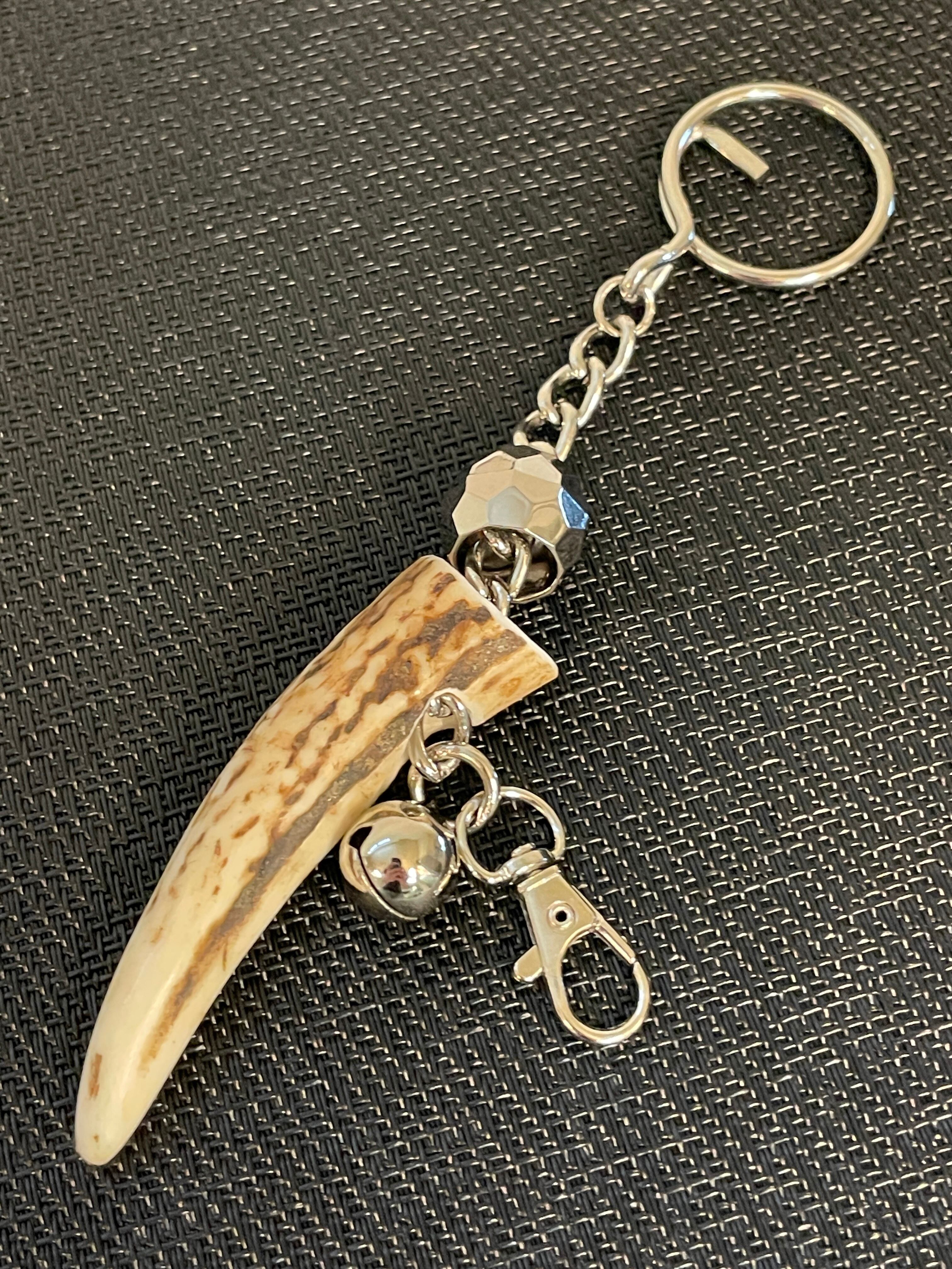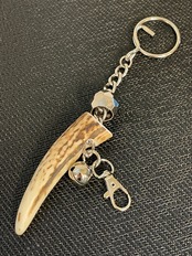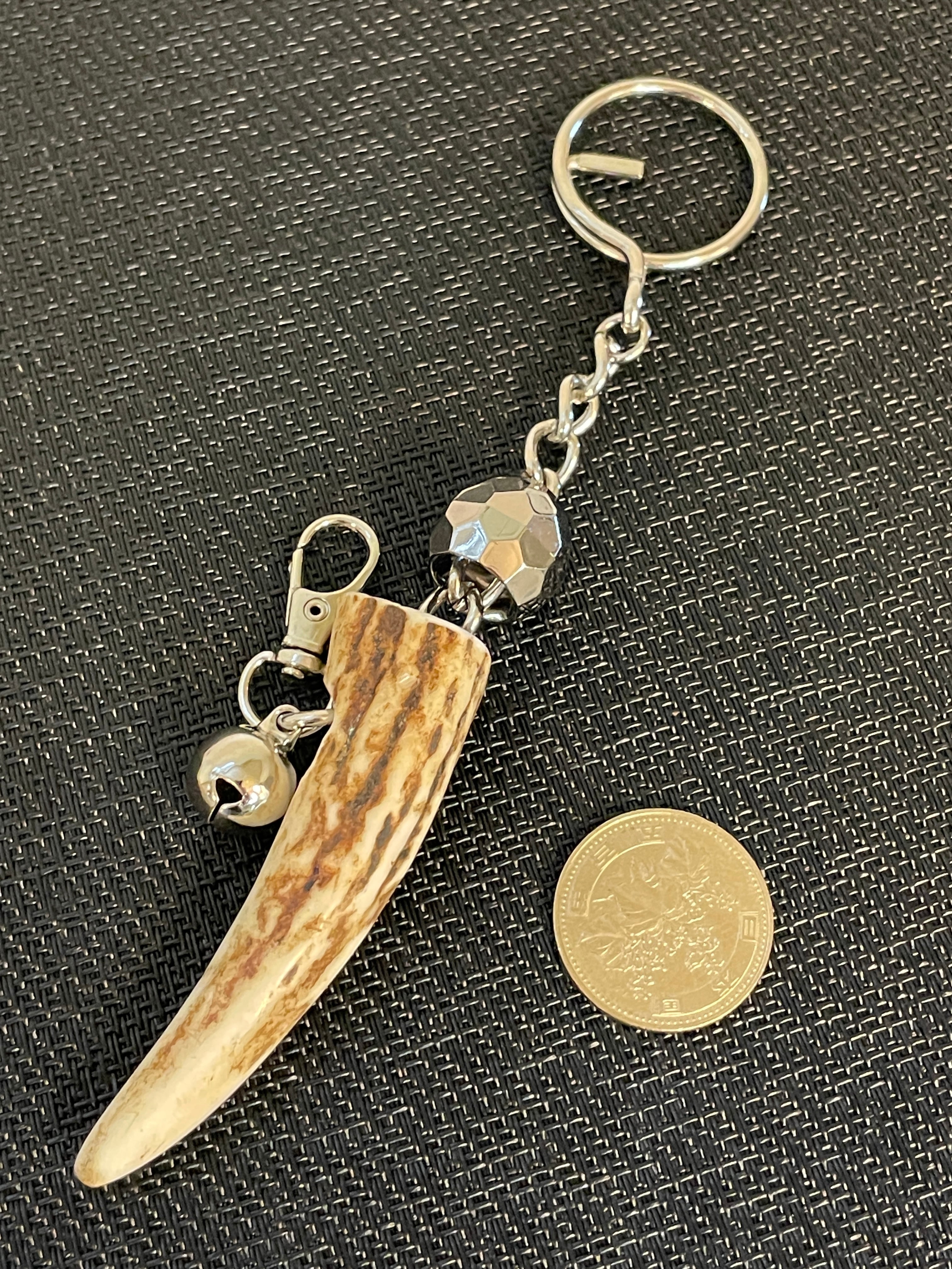 このエゾシカ角キーホルダーは、自然の美しさをそのままにしたユニークなアクセサリーです。狩猟で捕獲したエゾシカの角をカット・研磨してハンドメイドで作られたキーホルダーです。