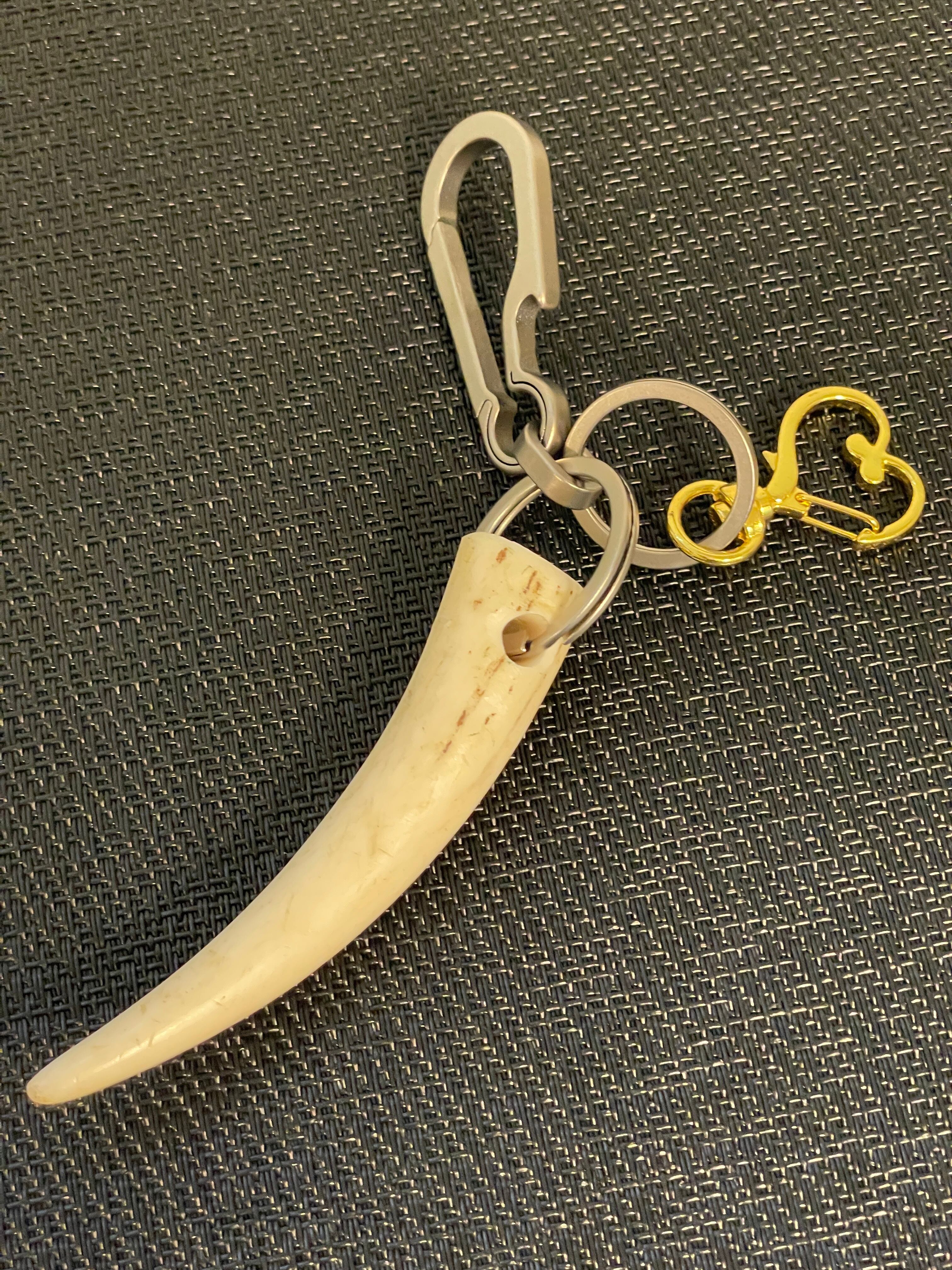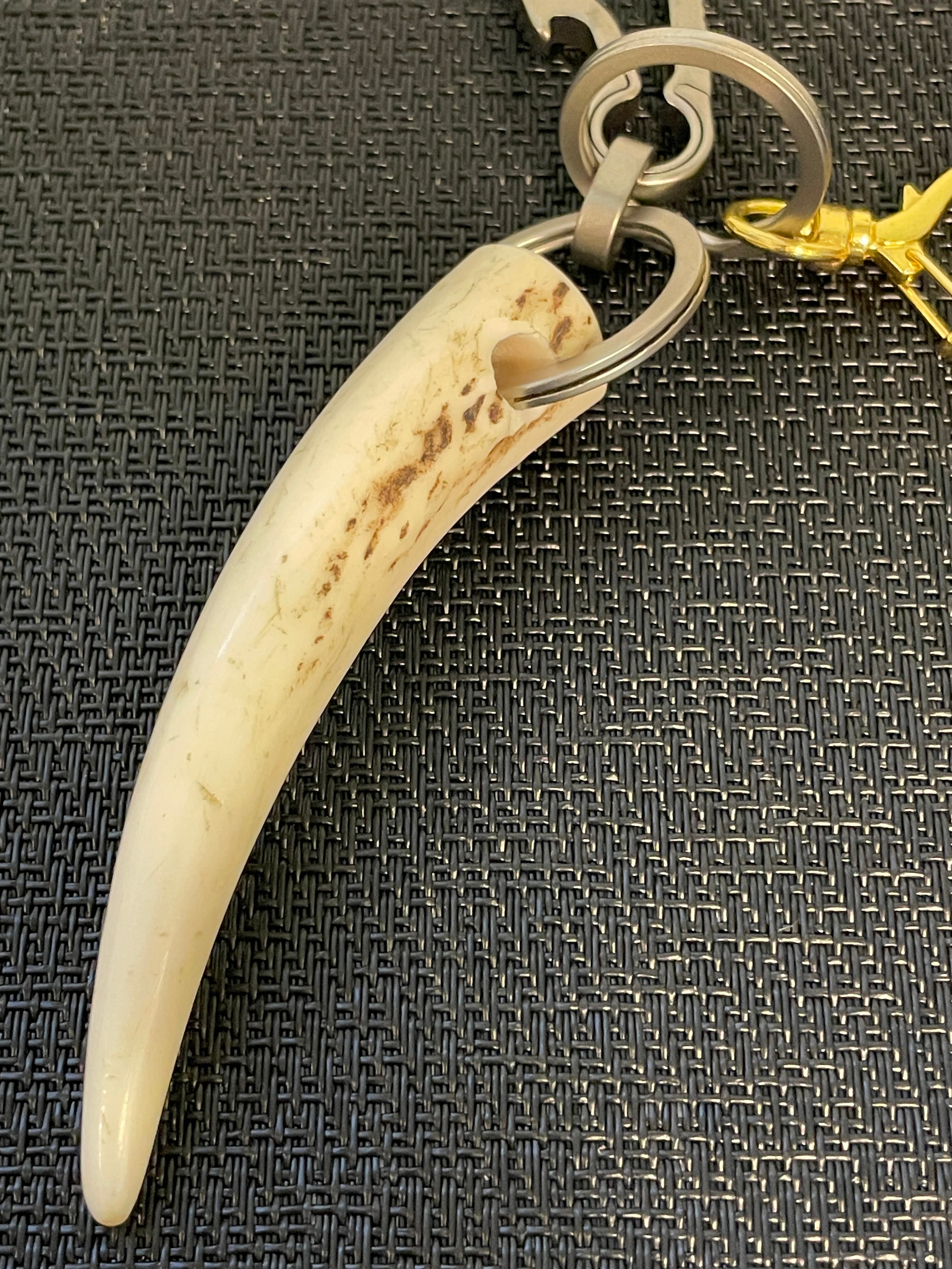 このエゾシカ角キーホルダーは、自然の美しさをそのままにしたユニークなアクセサリーです。狩猟で捕獲したエゾシカの角をカット・研磨してハンドメイドで作られたキーホルダーです。