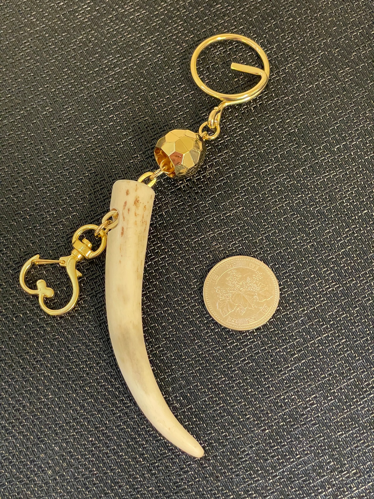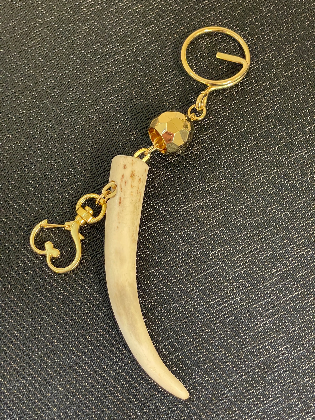 このエゾシカ角キーホルダーは、自然の美しさをそのままにしたユニークなアクセサリーです。狩猟で捕獲したエゾシカの角をカット・研磨してハンドメイドで作られたキーホルダーです。