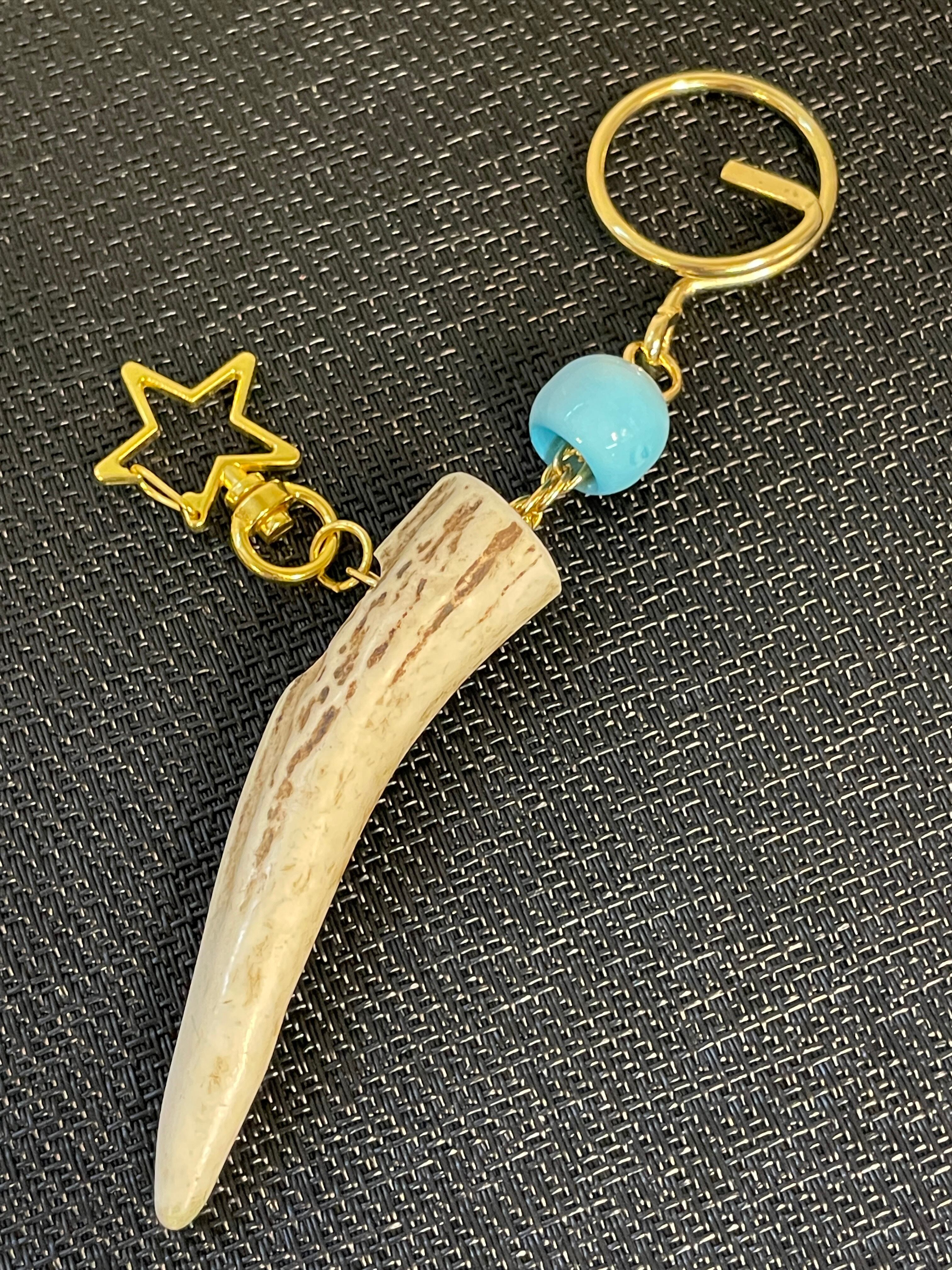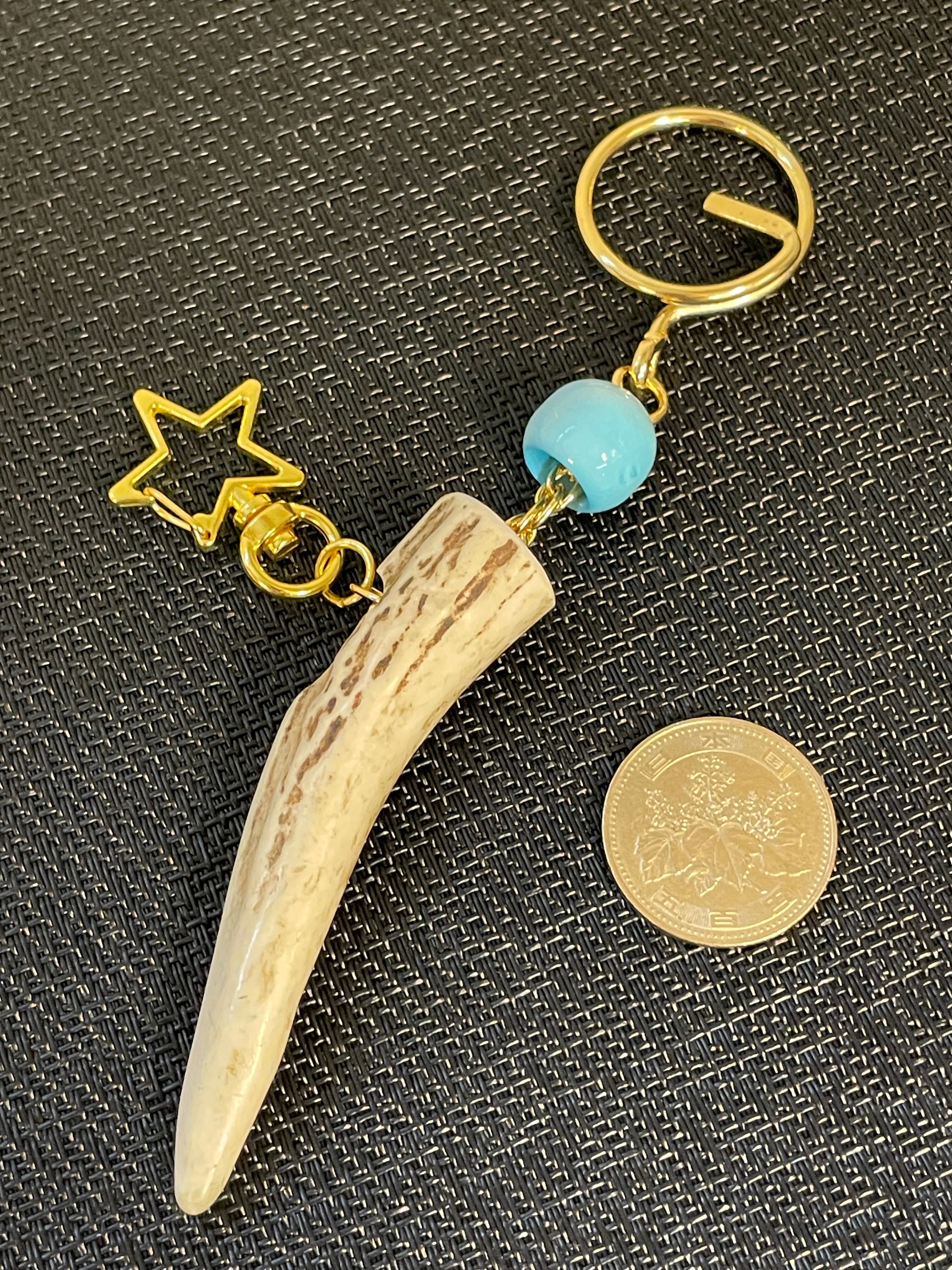 このエゾシカ角キーホルダーは、自然の美しさをそのままにしたユニークなアクセサリーです。狩猟で捕獲したエゾシカの角をカット・研磨してハンドメイドで作られたキーホルダーです。