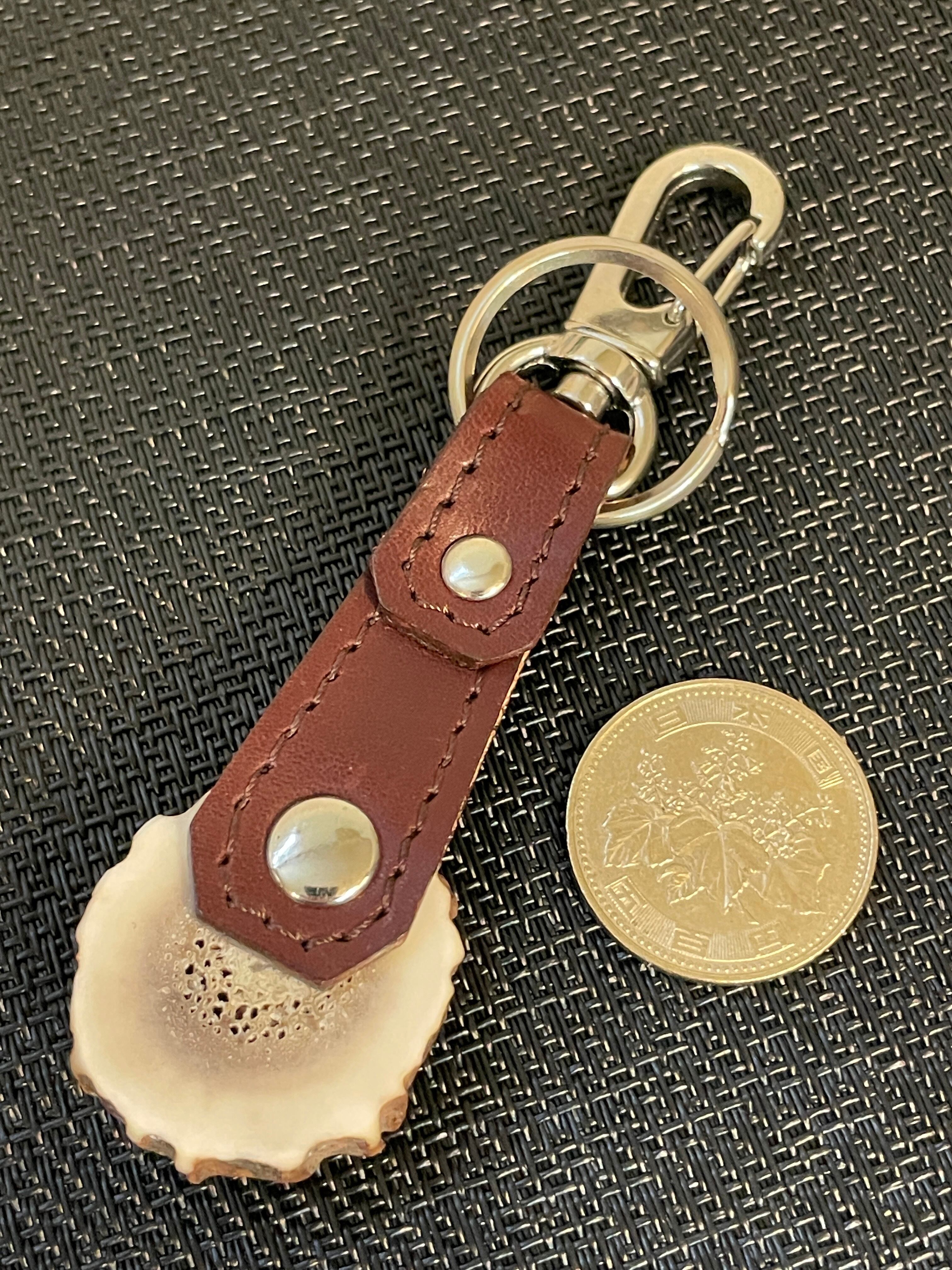 このエゾシカ角キーホルダーは、自然の美しさをそのままにしたユニークなアクセサリーです。狩猟で捕獲したエゾシカの角をカット・研磨してハンドメイドで作られたキーホルダーです。